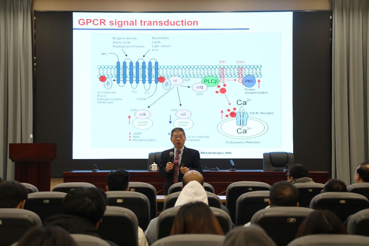 2024年12月19日下午,美国奥本大学陶亚雄教授受邀到学校开展学术交流,学校党委常委、副校长胡金朝出席会议,会议由中心党委副书记李锐主持。会议开始,胡金朝副校长为陶亚雄教授颁发了内江师范学院客座教授证书,并希望陶亚雄教授对我校水产学科建设、渔业发展硕士研究生人才培养和科学研究等方面进行多方位的支持与指导。陶亚雄教授以“Fish neural melanocortin receptors (鱼神经黑皮质素受体)”为题,系统介绍了鱼类黑皮质素受体的分类、蛋白结构及生理功能研究进展,并探讨了以黑皮质素受体为靶标的鱼类新品种选育、饲料添加剂开发及养殖管理方面的广阔应用前景。陶亚雄教授的精彩讲座让参会的广大师生受益匪浅,备受鼓舞。学术报告结束后,陶亚雄教授一行到水生生物学实验教学示范中心和长江上游鱼类资源保护与利用四川省重点实验室进行了考察,并与专任教师和科研人员进行了深入交流。